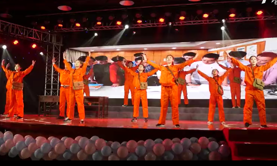 联谊会在校领导带领所有学者齐唱校歌《勘探队员之歌》中走向了高潮,在响彻大厅的歌声中落下了帷幕。