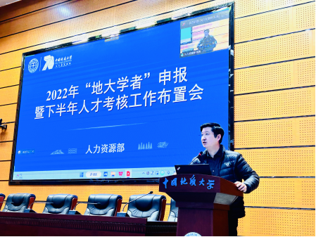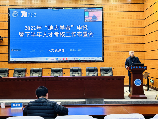 人力资源部部长夏帆布置2022年“地大学者”岗位申报和2022年下半年人才考核的相关事宜,他提出,各教学科研单位需围绕“地大学者”岗位申报和2022年下半年人才考核工作的契机,履行人才引进和人才培育工作的主体责任。结合学校人才队伍建设实际,积极推荐符合学校学科建设急需、响应国家战略发展需求的优秀人才申报“地大学者”岗位。在人才考核工作中,严把人才培育的质量关,推动学校高质量发展。