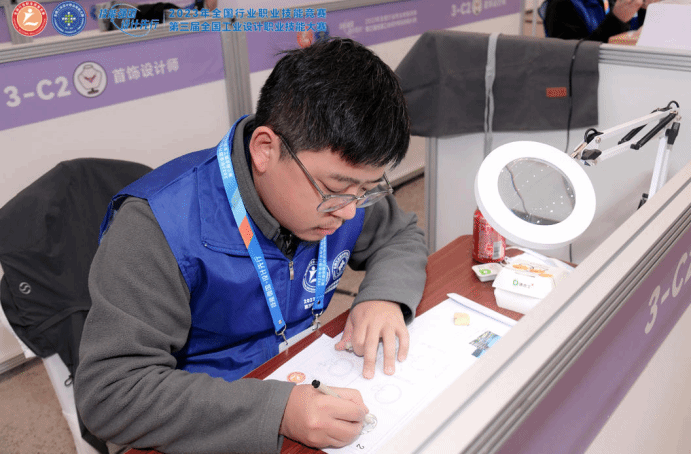 任开老师在全国工业设计大赛比赛现场进行设计模块角逐