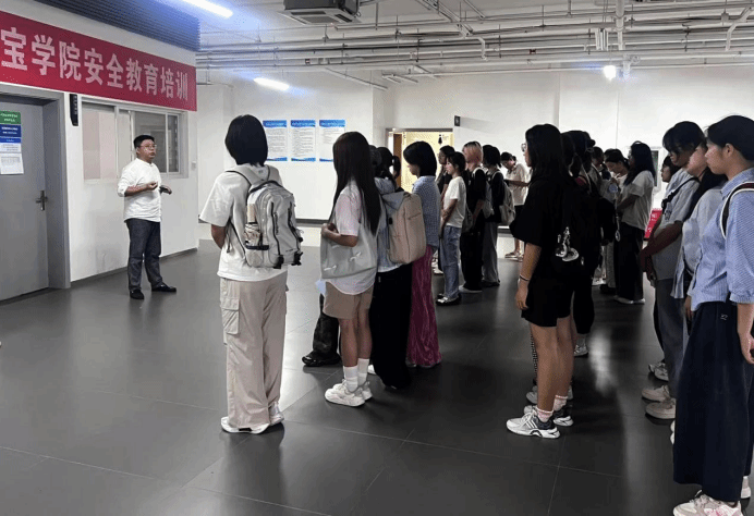 任开老师在实验教学区给大一新生进行安全教育