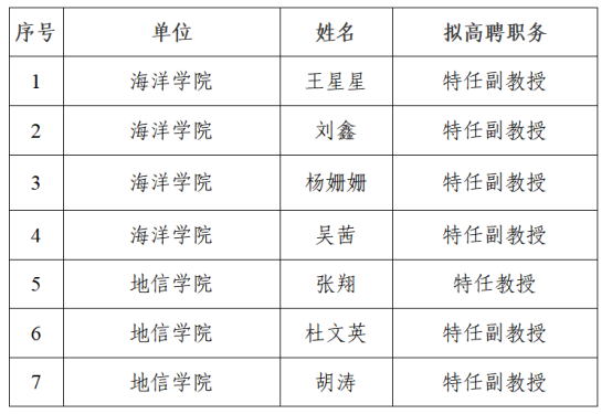 根据《中国地质大学(武汉)岗位设置管理实施方案(2019年修订版)》、《bevictor伟德官网,伟德国际1946特任教授(研究员)、特任副教授(副研究员)岗位管理办法(2019年修订版)》等文件规定,经个人申请、二级单位评议推荐,专家评审,现将评审结果公示如下。